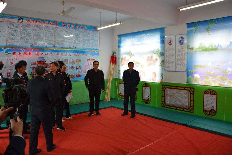 由河南省体育局、河南省教育厅联合组成的验收组首站到达南阳,验收组由冯振旗教授(华东水电学院)任组长,组员有金龙教授(河南大学体育学院)、司幸伟教授(河南师范大学),对我校申报“河南省武术特色学校”进行实地验收。