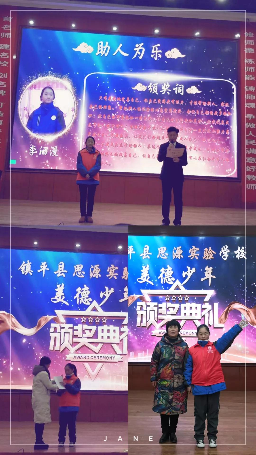 为弘扬中华传统美德,树立榜样作用,2020年1月2日,镇平县思源实验学校首届“美德少年”颁奖典礼在多功能报告厅隆重举行。全校师生及学生家长共同见证美德的力量,接受美德的传承。