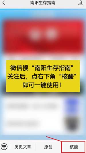 关注南阳生存指南后可以一键登记核酸二维码、查询核酸结果、登记南阳场所码