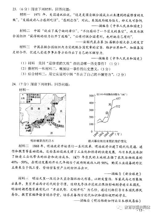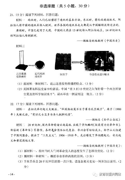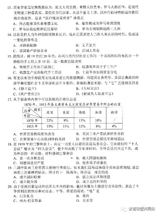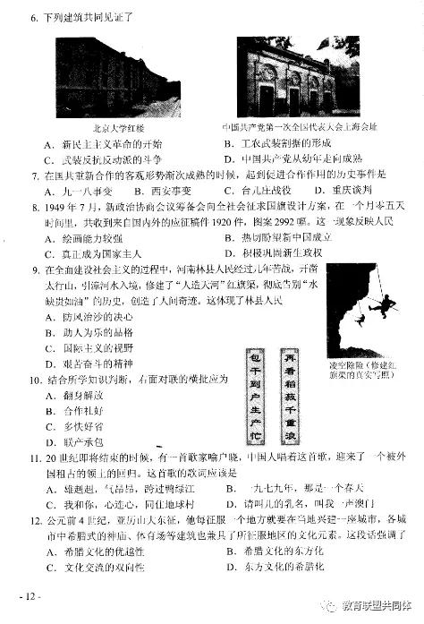 2020年河南省中招考试历史试卷及答案
