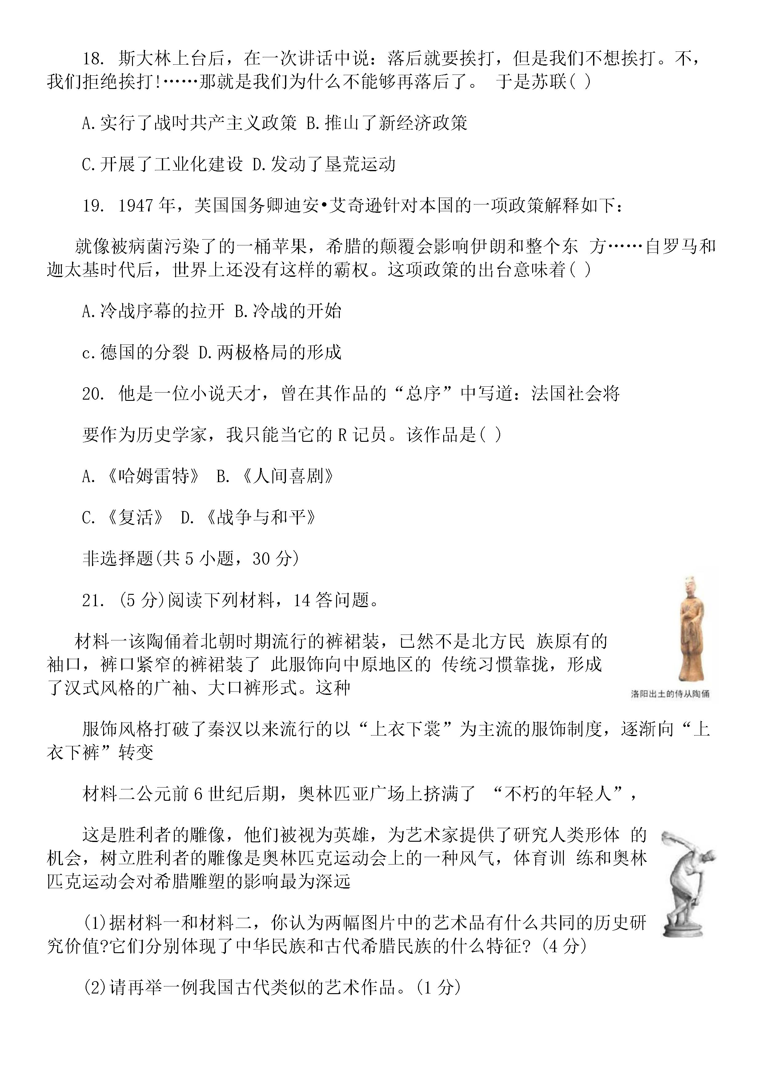 2020年河南省中招考试历史试卷及答